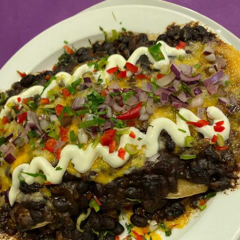 Nachos cubiertos de queso fundido, chorizo tierno, pollo asado, salsa mexicana verde, pico de gallo y guacamole casero. Una combinación exquisita.